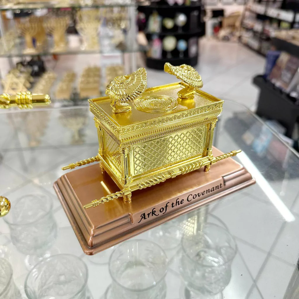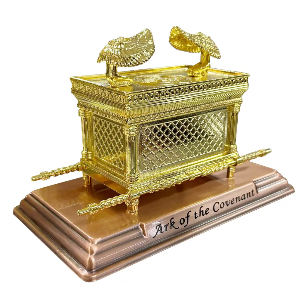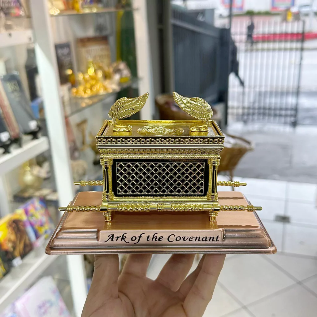 Arca da Aliança folheada a ouro importada de Israel, uma obra-prima de artesanato sacro, inspirada nos relatos bíblicos. Meticulosamente revestida com ouro, esta réplica fiel simboliza a aliança sagrada entre Deus e o povo de Israel. Com detalhes ricamente esculpidos e um acabamento impecável, esta peça não só representa um tesouro espiritual, mas também um objeto de admiração artística e histórica.