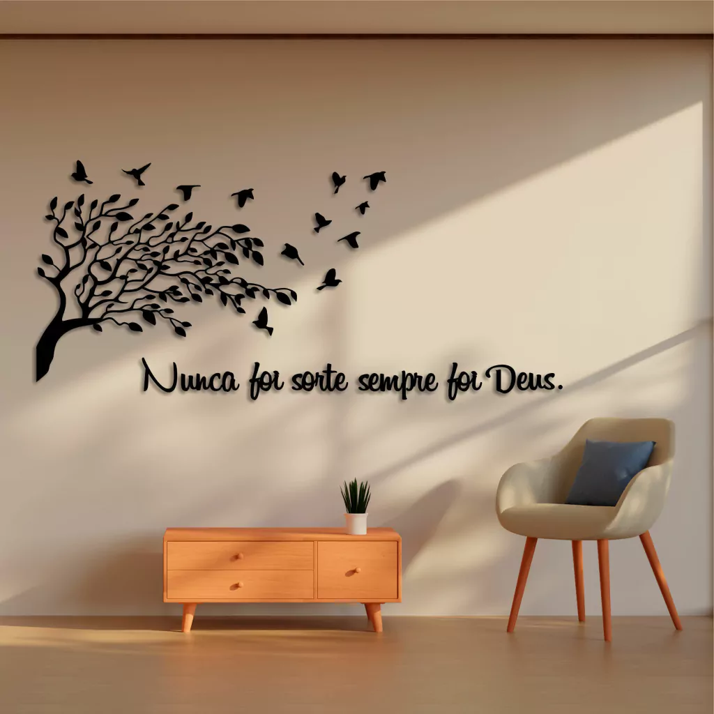 Uma encantadora árvore esculpida em MDF, acompanhada de uma inspiradora frase "Nunca foi sorte, sempre foi Deus". Esta peça artesanal não apenas celebra a beleza da natureza, mas também recorda a importância da fé e gratidão em nossas jornadas. Um toque especial para decorar seu quarto, sala ou qualquer outro espaço com significado e serenidade.