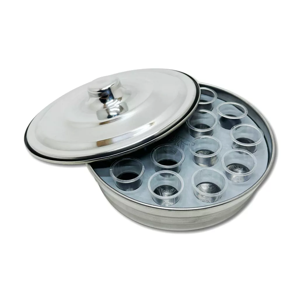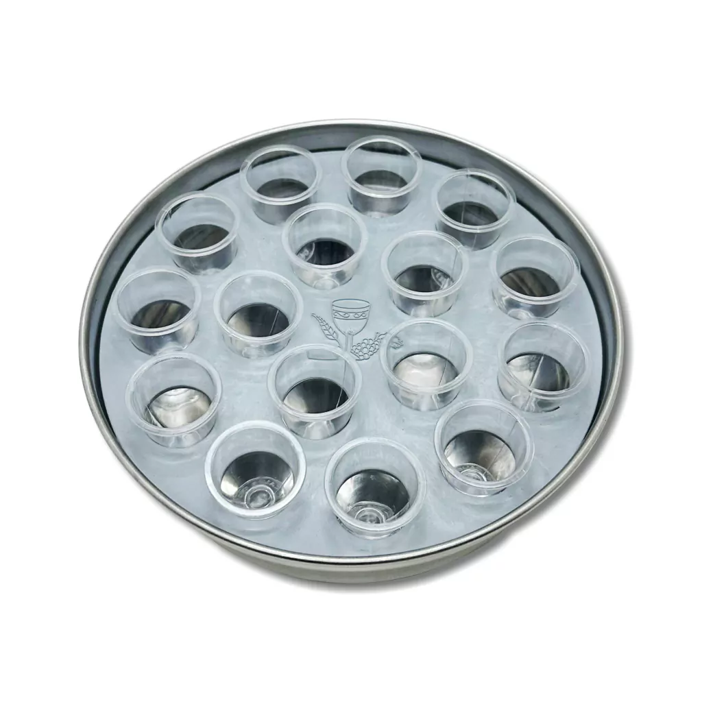 Bandeja em alumínio, capacidade para 16 cálices com aro removível.