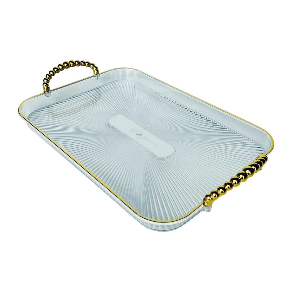 Fabricada em acrílico de alta qualidade, oferece um toque especial à sua mesa. As alças douradas agregam requinte e facilitam o manuseio, conferindo um visual maravilhoso em cada detalhe, para um momento tão importante.