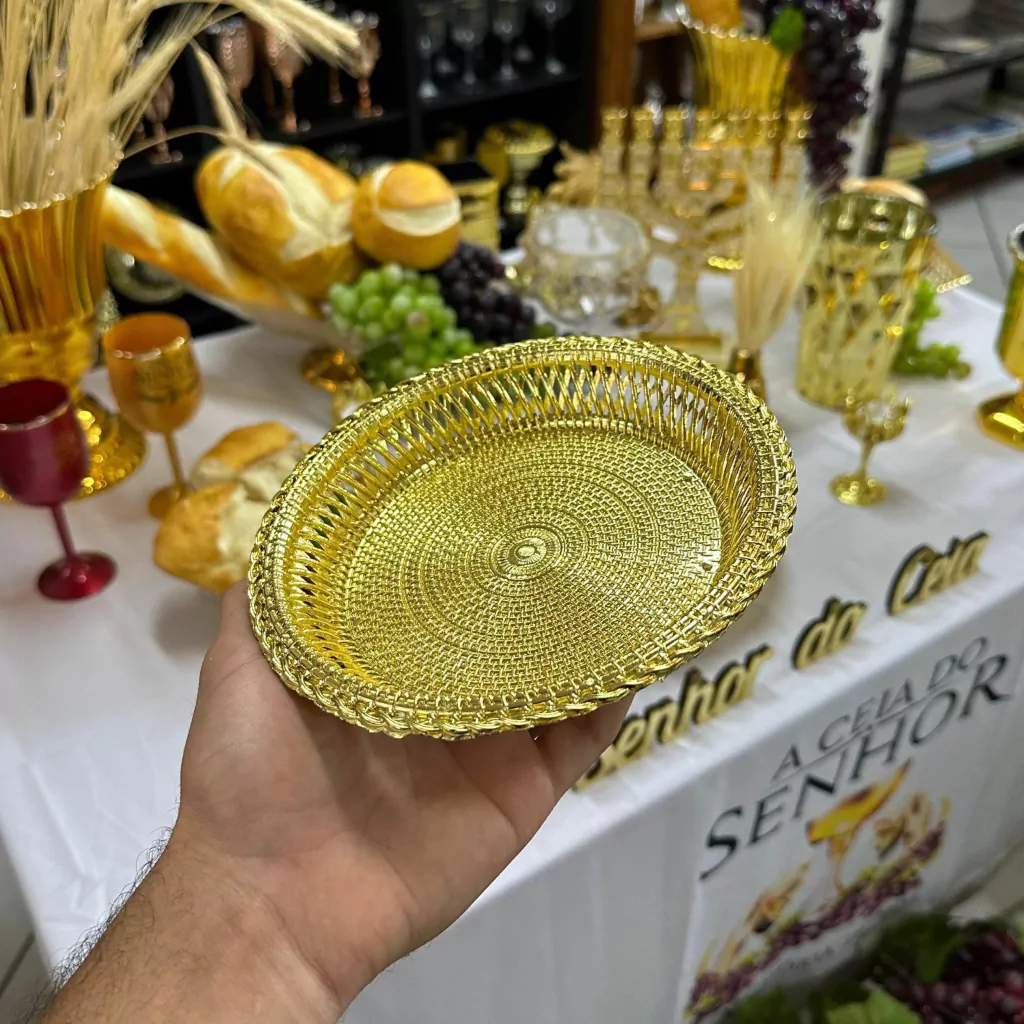 Bandeja Redonda, perfeita para decorar Mesa de Santa Ceia.