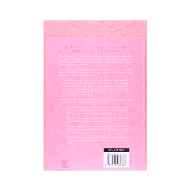 Esta Bíblia também traz 600 pérolas do Evangelho e poderosas citações de T. D. Jakes que transmitirão entusiasmo ao coração feminino. Além disso, inclui uma seção de resumos biográficos sobre dez mulheres da Bíblia, com ênfase nas lições que você poderá aprender com a vida de cada uma delas, além de segredos da alma e orações escritas por T. D. Jakes.
