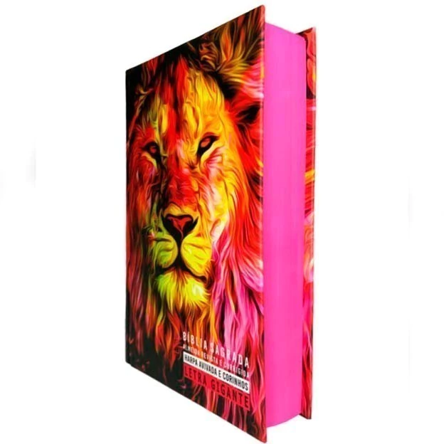 Acabamento: Capa dura com estampa "Leão Fogo"
