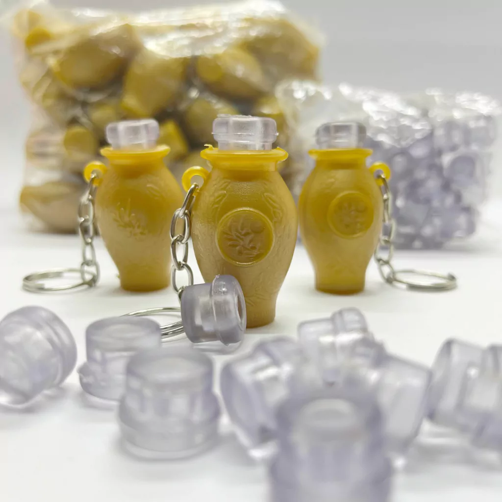 A Botija com recipiente para óleo é ideal para campanhas e cerimônias de unção, simbolizando a presença e a bênção de Deus. Compacta e funcional, é perfeita para carregar e distribuir óleo ungido durante momentos especiais de consagração.