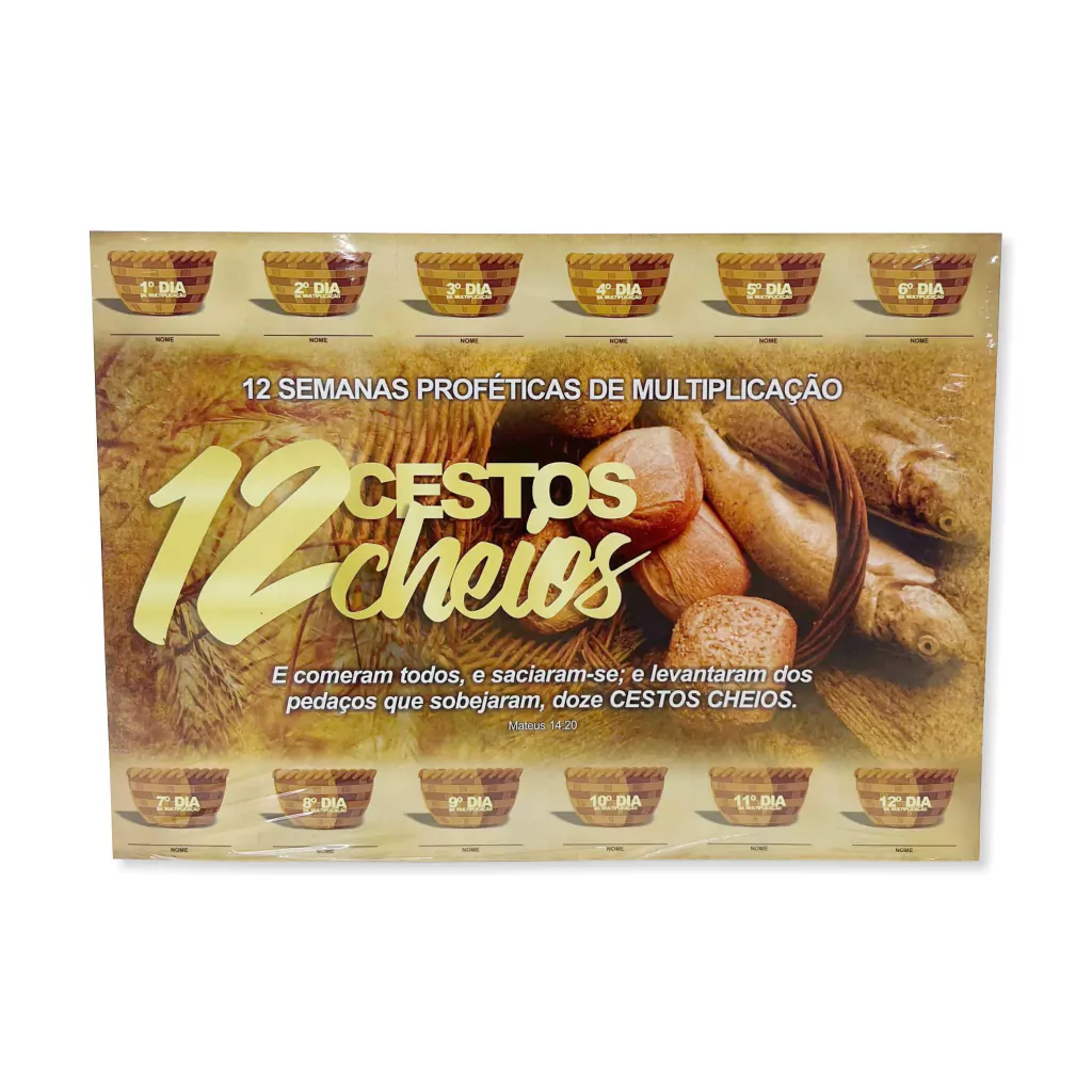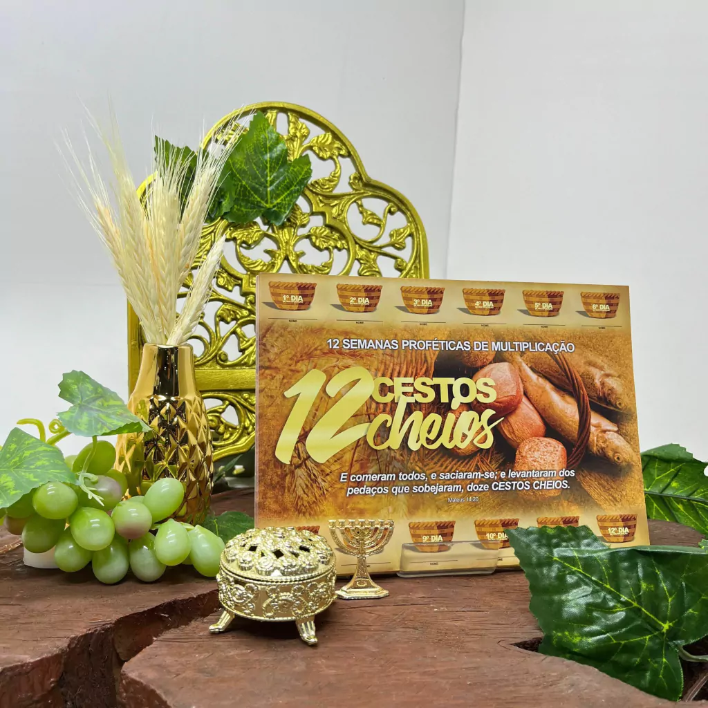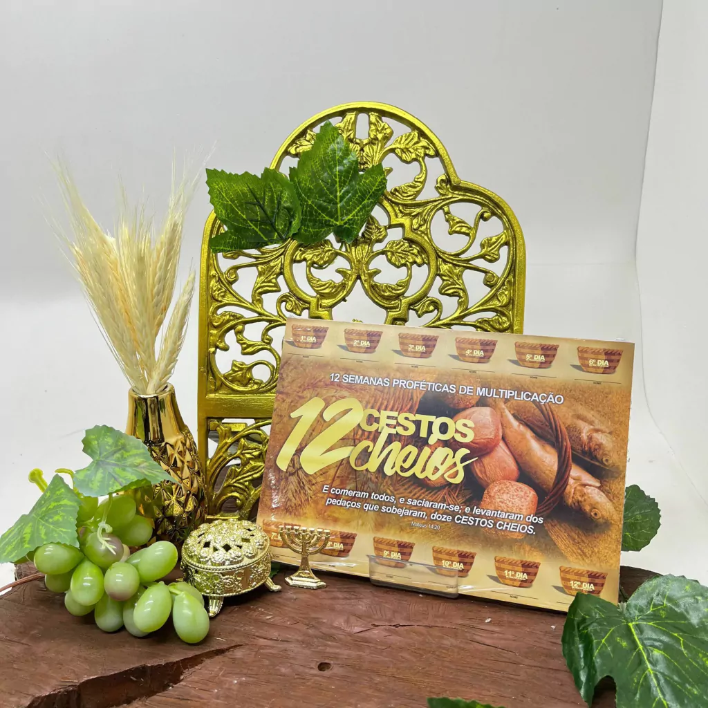Baseada no milagre dos 12 cestos cheios, esta cartela simboliza a generosidade divina e a abundância de Deus em nossas vidas. Cada cesto representa a graça e o sustento que recebemos, reforçando nossa fé e compromisso com a missão.