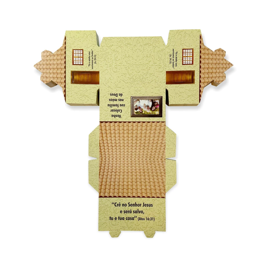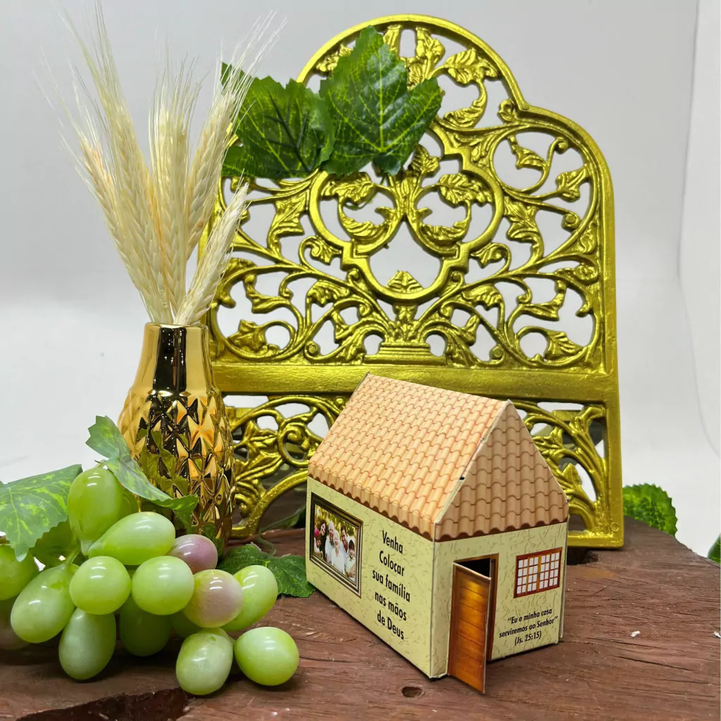 A Casinha de Papel “Eu e Minha Casa Serviremos ao Senhor” é uma forma especial e simbólica de incentivar momentos de consagração e intercessão pelas famílias na igreja. Representando um lar, ela carrega mensagens inspiradoras em suas laterais:
