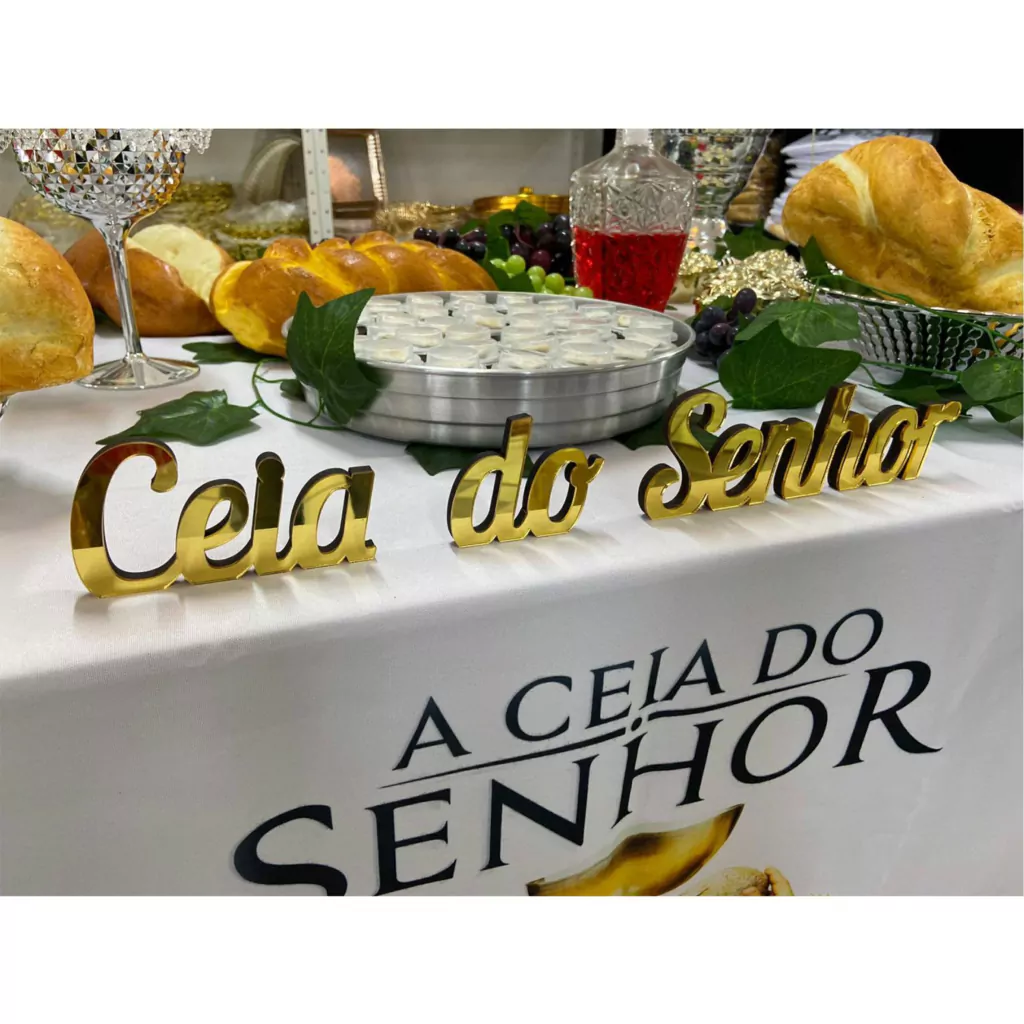 01 - Escrita Ceia do Senhor no acrílico dourado espelhado 40x6 Centímetros