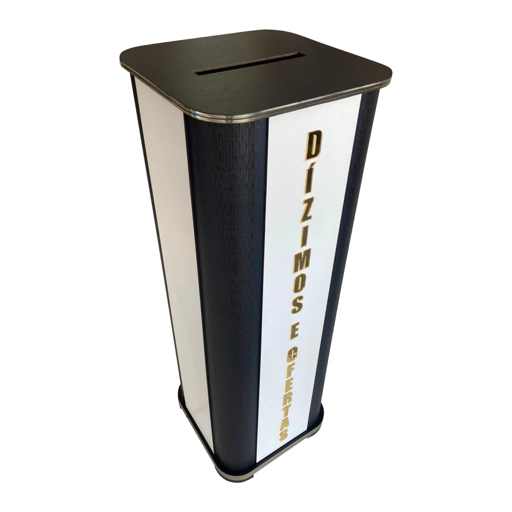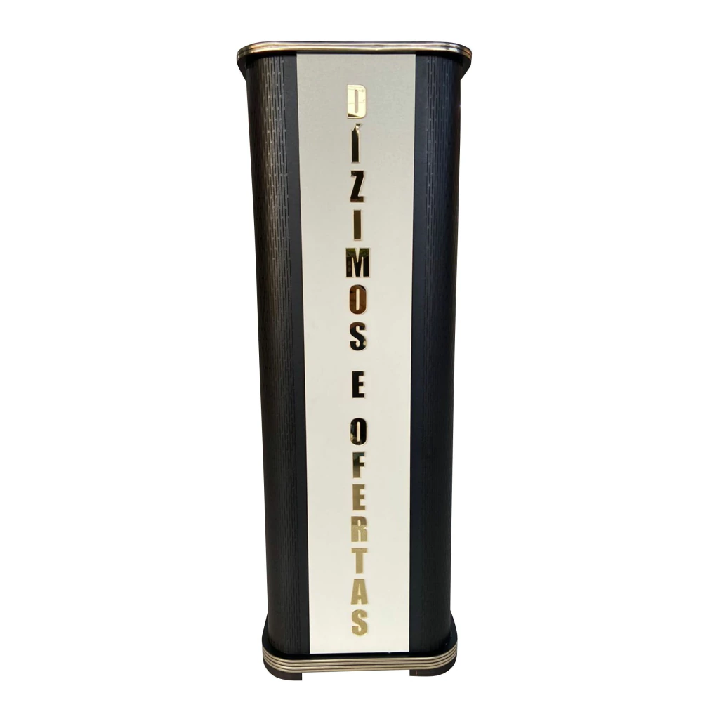 Escrita: "Dízimos e Ofertas" em acrílico dourado, proporcionando um visual elegante e profissional.