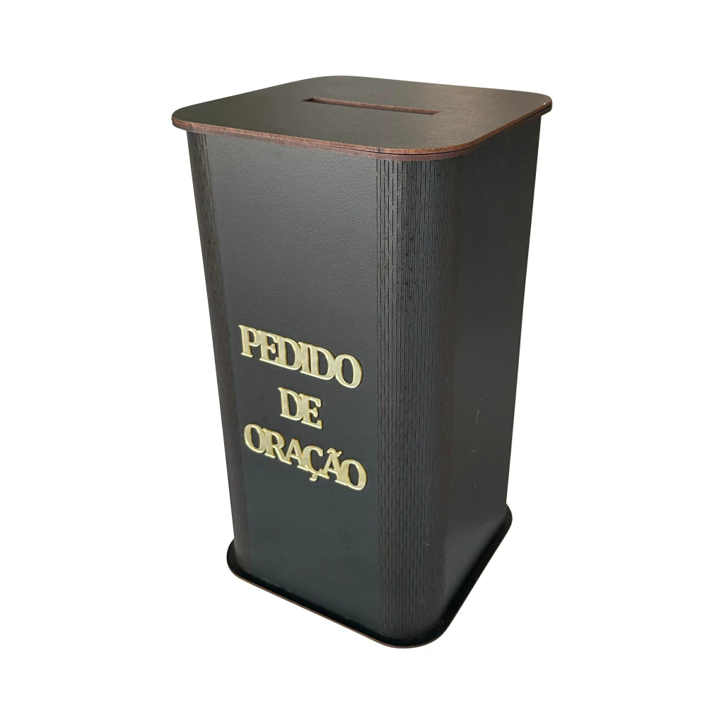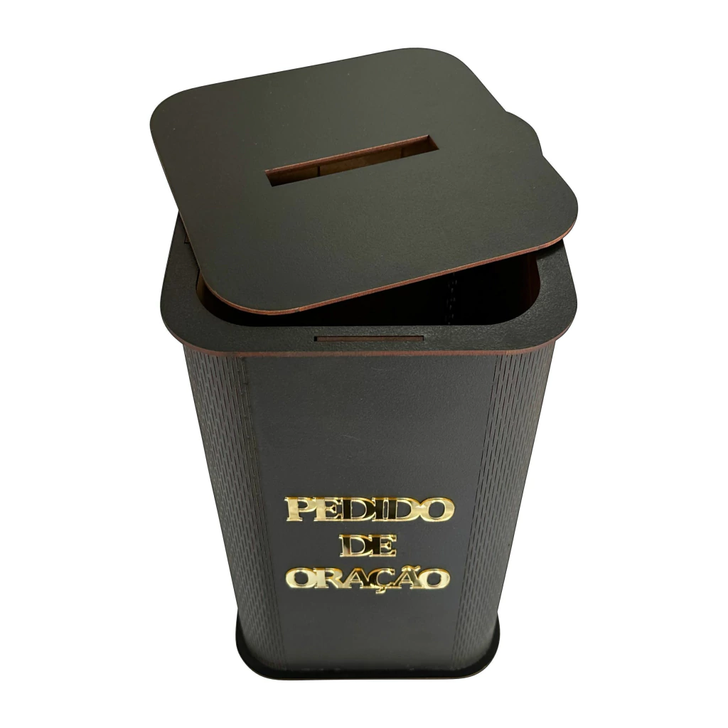 Escrita: "Pedido de Oração" em acrílico dourado, proporcionando um visual elegante e profissional.