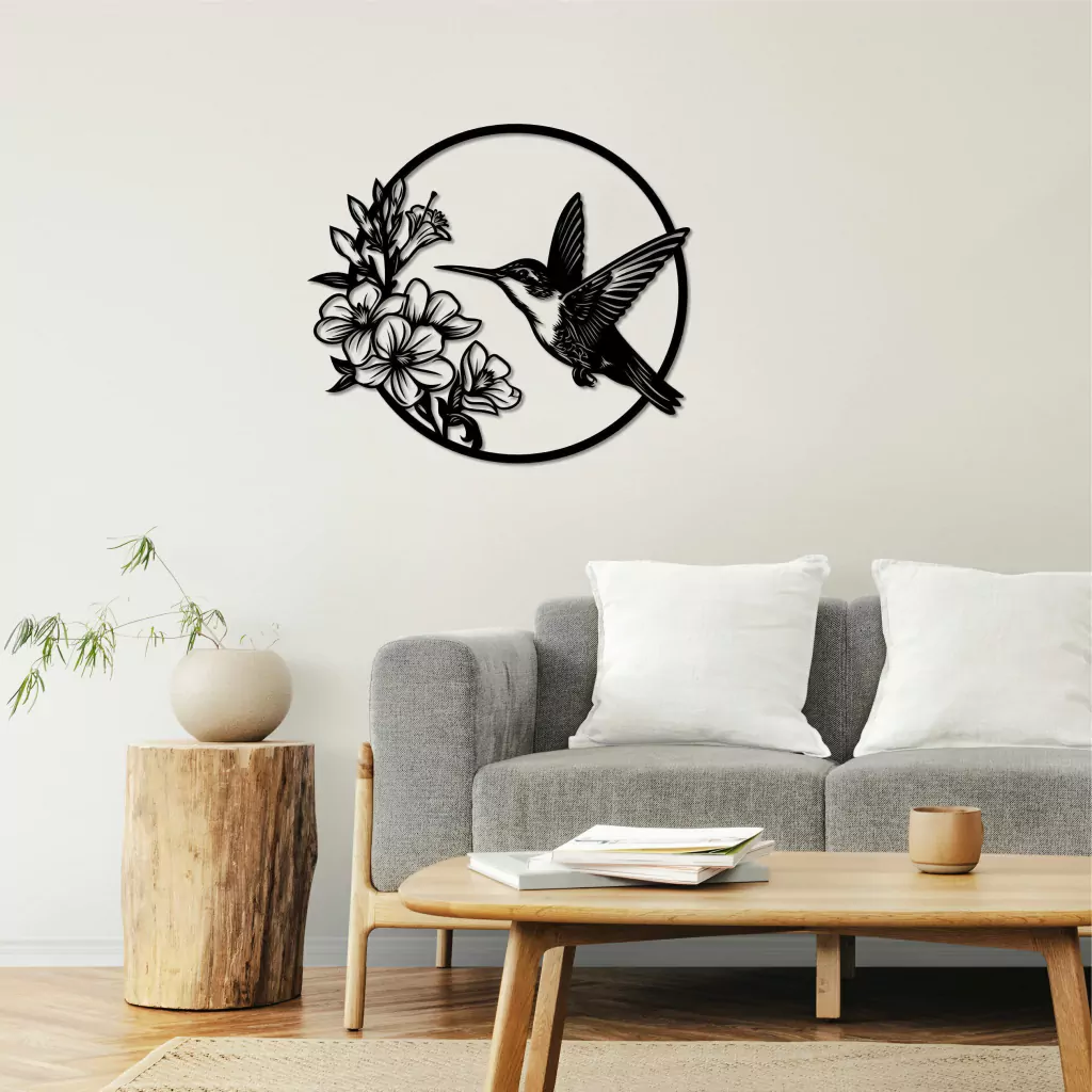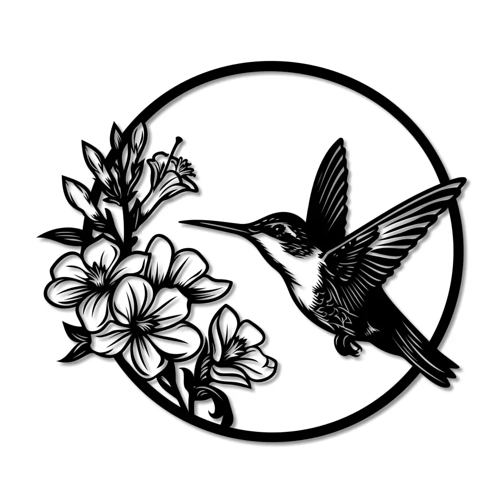 Mandala única em MDF, centrada na graciosa figura de um beija-flor. Os detalhes intricados capturam a energia e a beleza dessas aves encantadoras, proporcionando uma peça de arte envolvente que adiciona uma atmosfera alegre e delicada à sua decoração.