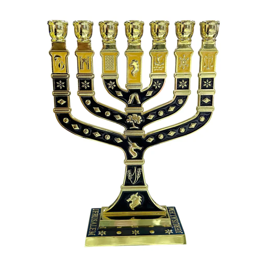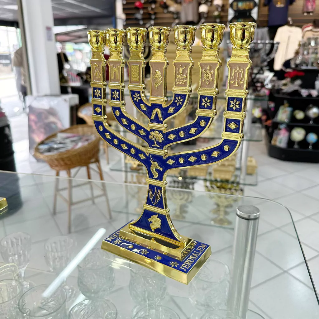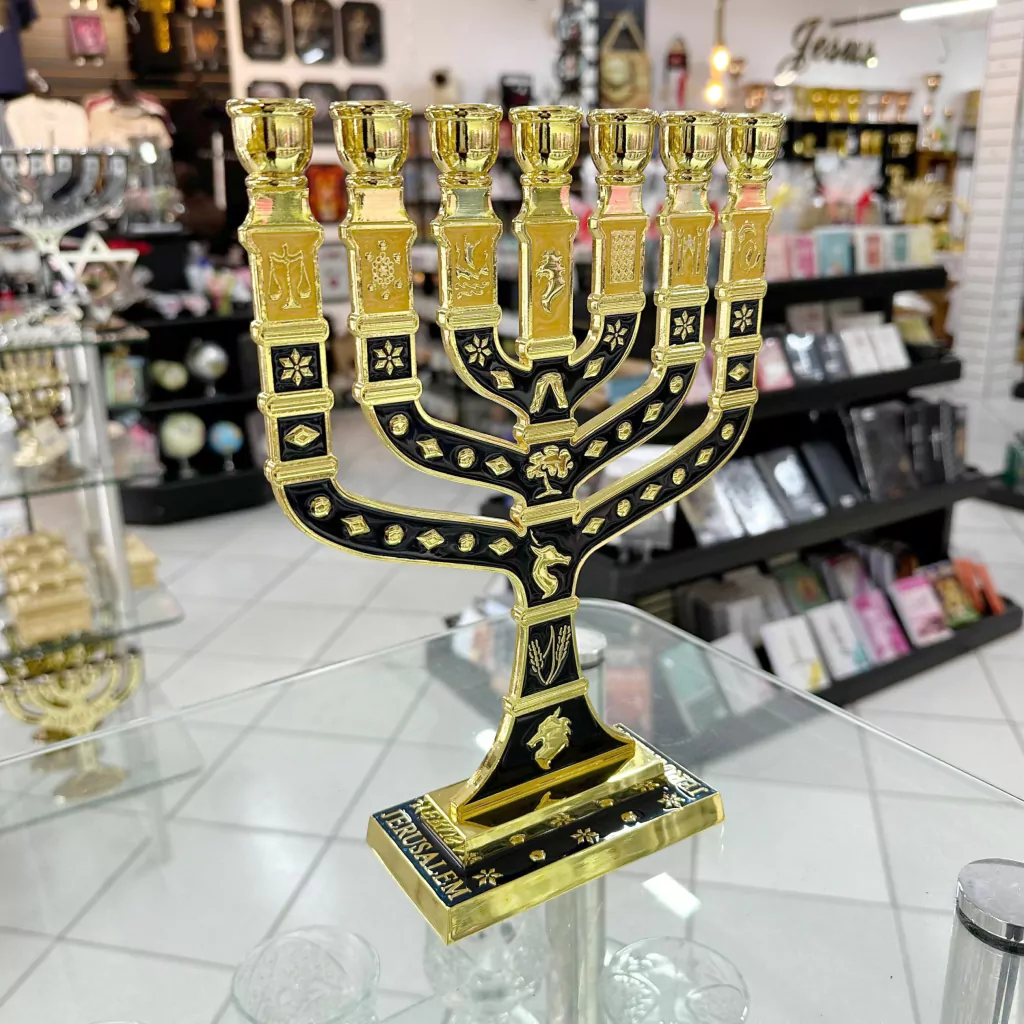 Menorah folheada a ouro importada de Israel, é um candelabro elegante e tradicional, simbolizando a rica herança cultural e religiosa judaica. Com acabamento dourado, essa peça de arte é ideal para decorar ambientes, servindo também como um presente significativo e sofisticado. Fabricada com atenção meticulosa aos detalhes, a Menorah reflete a beleza e a espiritualidade da tradição hebraica.