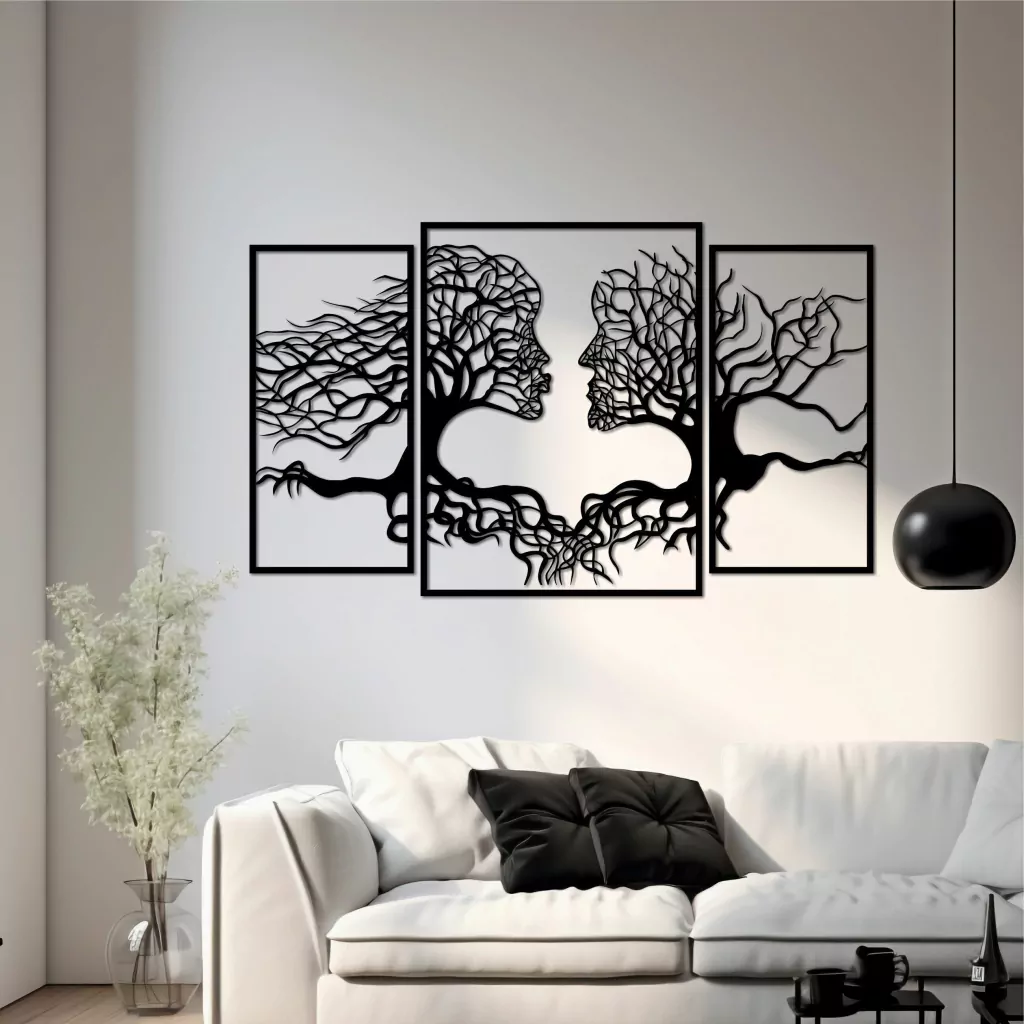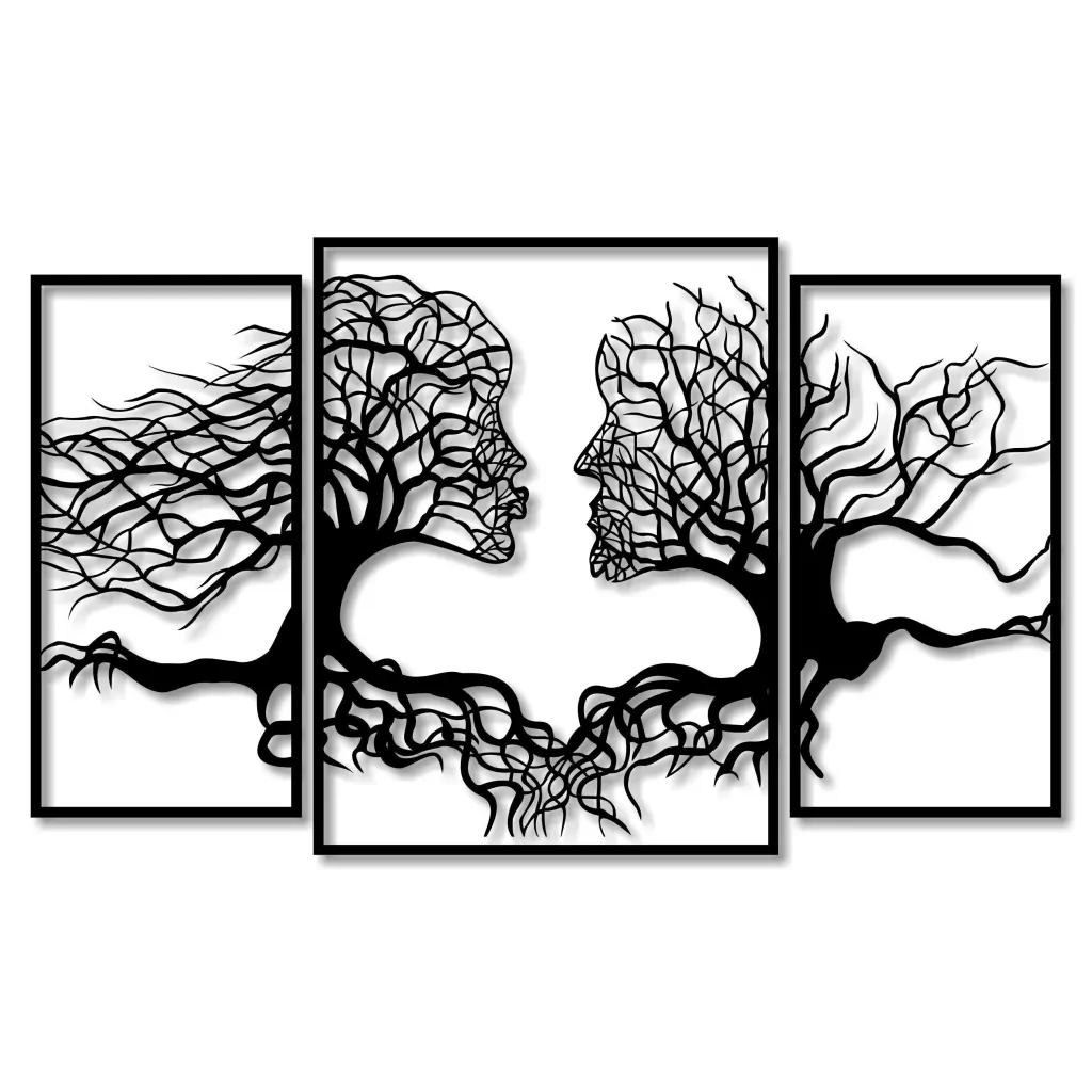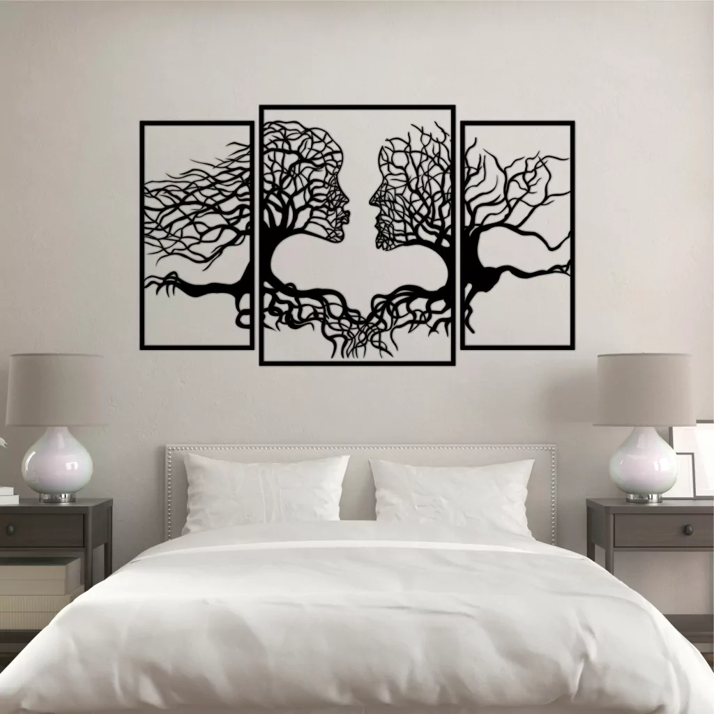 Quadro de casal com raiz de árvore, uma obra que incorpora a beleza natural da madeira e durabilidade do MDF, resultando em uma peça artística que simboliza a firmeza e a beleza duradoura da relação entre o casal.