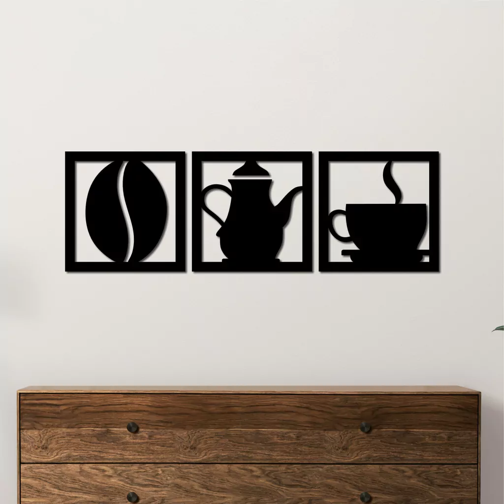 Este trio de quadros é o puro aconchego cafeinado! Com ilustrações descontraídas de grão de café, um bule e uma xícara, eles trazem o clima aconchegante do café para a sua decoração. Perfeito para deixar sua cozinha ou cantinho do café com um toque de charme e estilo descontraído.