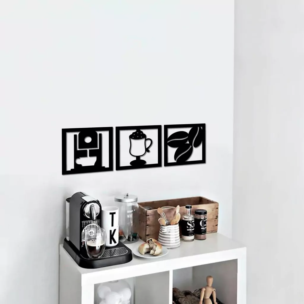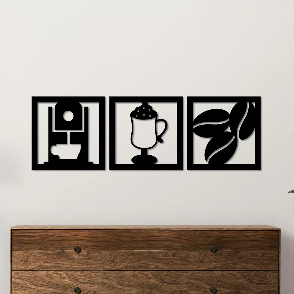 Imagine três quadros de MDF que trazem toda a vibe aconchegante de uma cafeteria: xícaras de café, gente conversando e aquele clima relaxante. É como se fosse um pedacinho desse lugar especial na sua parede, pronto para deixar qualquer ambiente mais acolhedor e cheio de estilo!