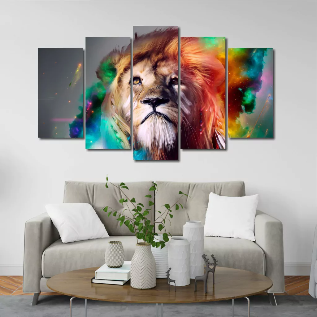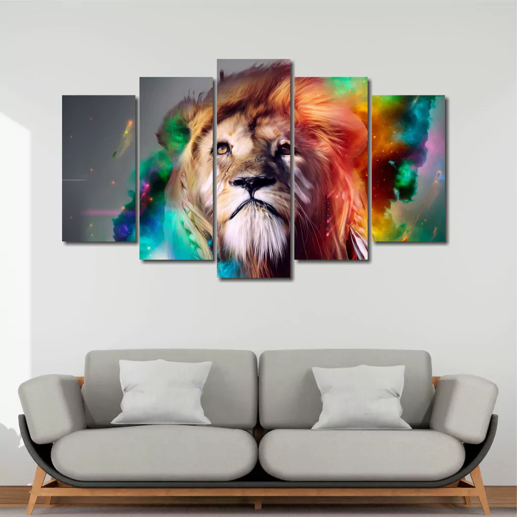Este quadro mosaico de leão colorido é simplesmente incrível! Feito com cinco peças em MDF, cada uma cheia de cores vibrantes e detalhes impressionantes, ele é uma explosão de vida na parede. Capturando toda a essência do leão com muito estilo, é uma adição divertida e marcante para decorar qualquer ambiente.