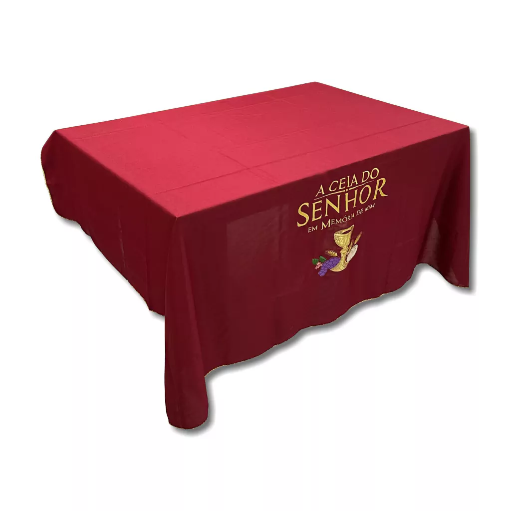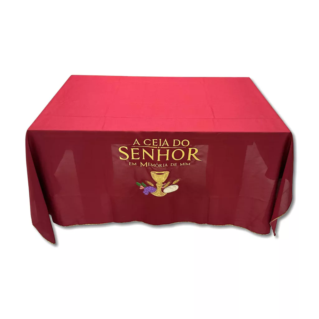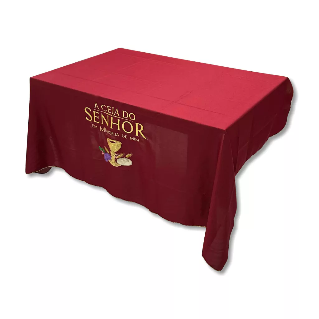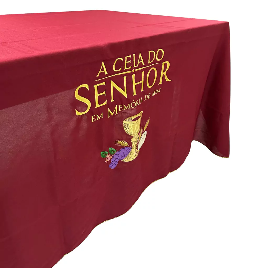 Toalha Vinho Bordada, elegante e fina para decorar mesa de Santa Ceia.