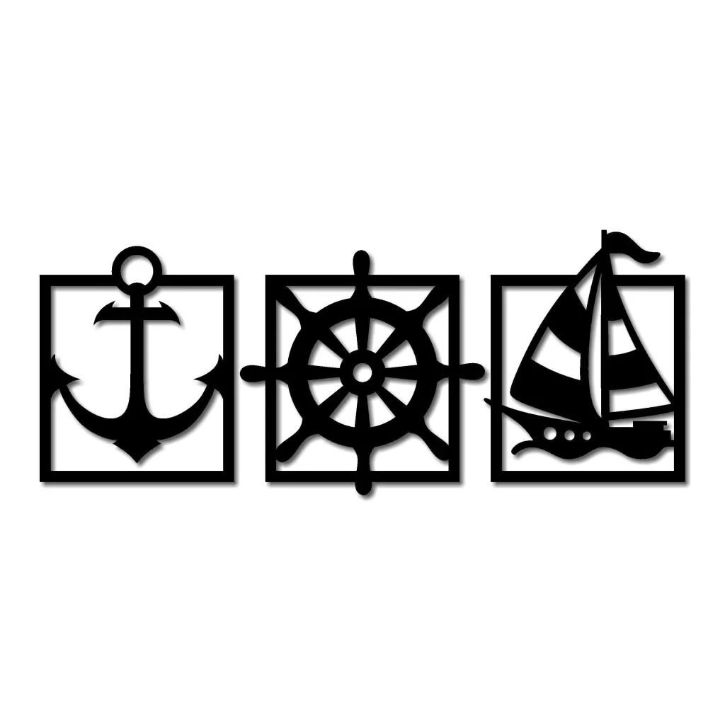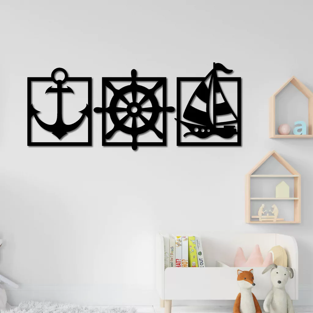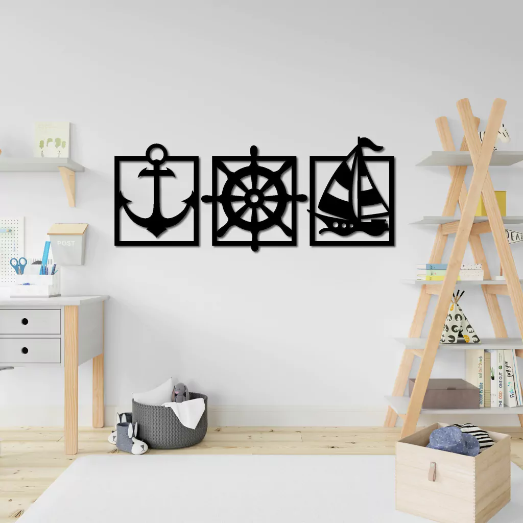 Conjunto de três quadros, inspirados no tema marinheiro. Cada peça trabalhada destaca elementos náuticos como âncoras, lemes e barcos. O design proporciona uma vibe marítima encantadora, perfeita para decorar sua casa. Trio ideal para os amantes do mar.