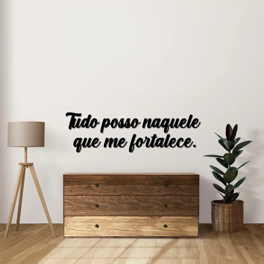 Escrita: "Tudo posso naquele que me fortalece." Uma peça que não apenas exibe a elegância do material, mas também serve como um lembrete constante do poder interior que capacita a superar desafios. Decore seu espaço com esta mensagem inspiradora e edificante.